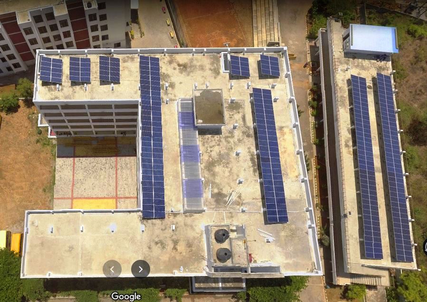 As a part of its ‘Green Campus’ initiative, College campus has set up a 100kWp Roof Top Solar PV Power Plant on its academic buildings which is spread over an area of 15,000 sq.ft.. The 100kWp plant consists of smaller arrays each having 12 * 6 cells. The Solar Power Plant, with unique design, consists of 100kWp Solar Photovoltaic Modules, 2 numbers of 50kW Grid Connected Inverters. Street lights in the college campus will also be supplied from the same rooftop power. With the solar potential of 325W peak sun hours per day for each panel, the PV power system efficiency of 78%. The estimated plant capacity factor is 17%. More than 50% of electricity demands of the institution will be met by this solar roof top plant.