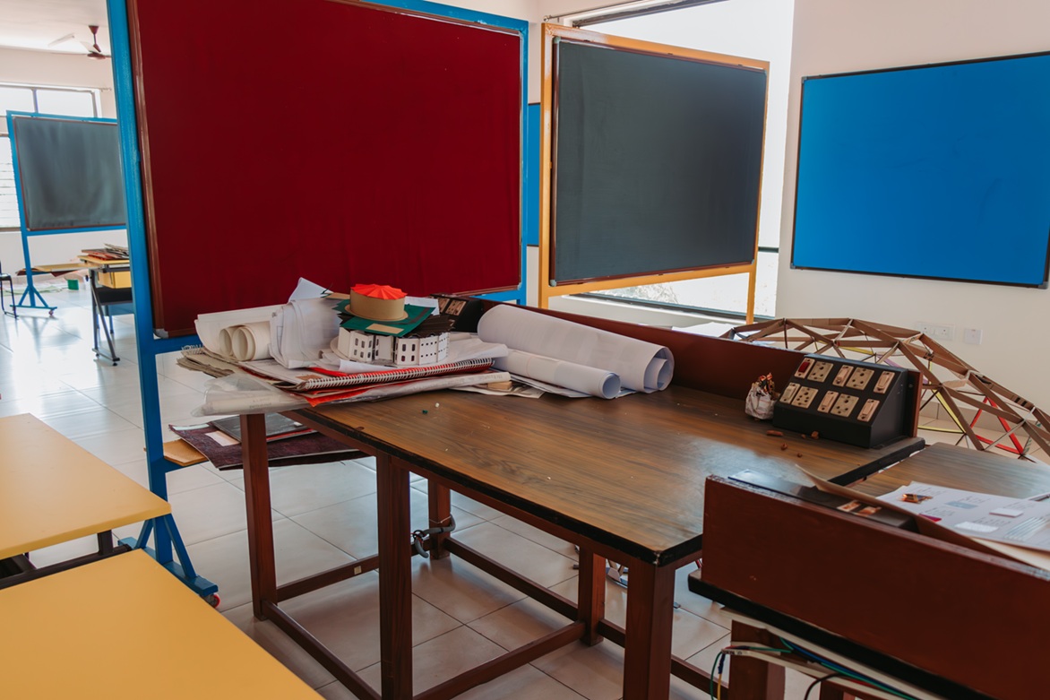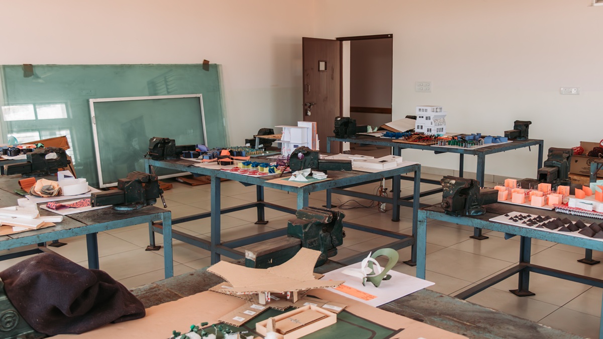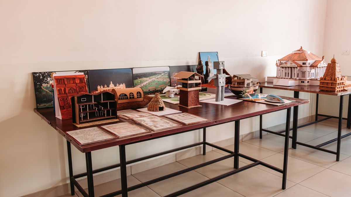 An excellent collection of latest materials and equipment used for both interior and exterior use in the building construction also includes plumbing and sanitation, electrical, HVAC components, acoustic elements, finishes for walls, floor, ceiling is provided. Students to get exposure of different types of building materials used in the field and this also serves as a learning space for the students to decide on their choice of materials during their academics.