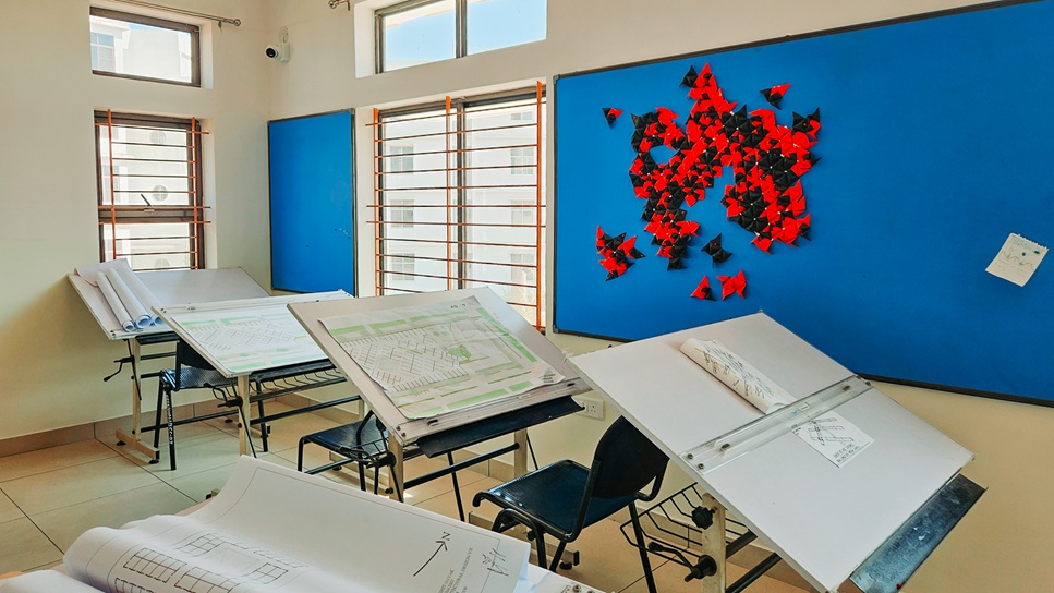 Studios are well equipped with latest drawing tables, comfortable sitting chairs and green board. Studios are spacious, well ventilated to suit not only designing and drawing but also to facilitate the review of students work and group discussions .All provisions have been made for working 24/7.